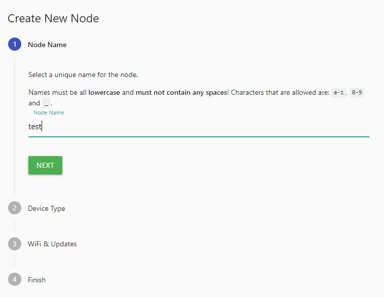 Node Name은 ESP모듈에 부여하고 싶은 고유 이름을 지정하는 자리입니다. 전 그냥 test라고 했습니다.