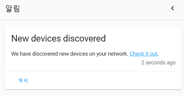 이제 HA에서 마무리 작업만 남았습니다. ESPHome 기반이기 때문에 정상적으로 동작을하고 있다면 HA 서버에서 자동으로 신규 장비로 인식하여 알림을 보내줍니다.