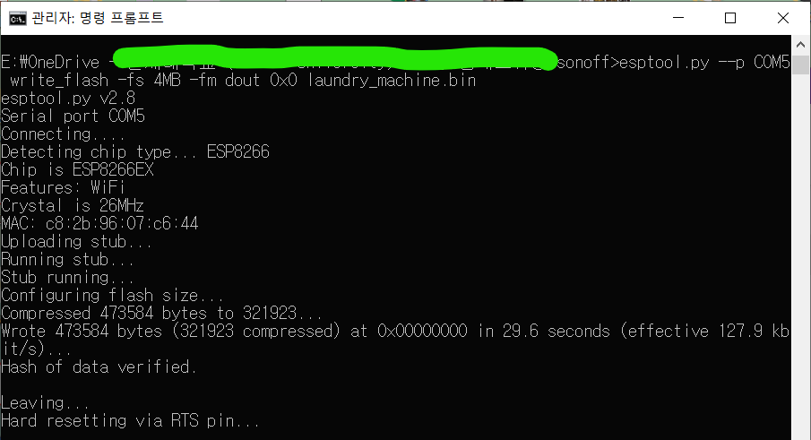esptool.py --p COM5 write_flash -fs 4MB -fm dout 0x0 laundry_machine.bin