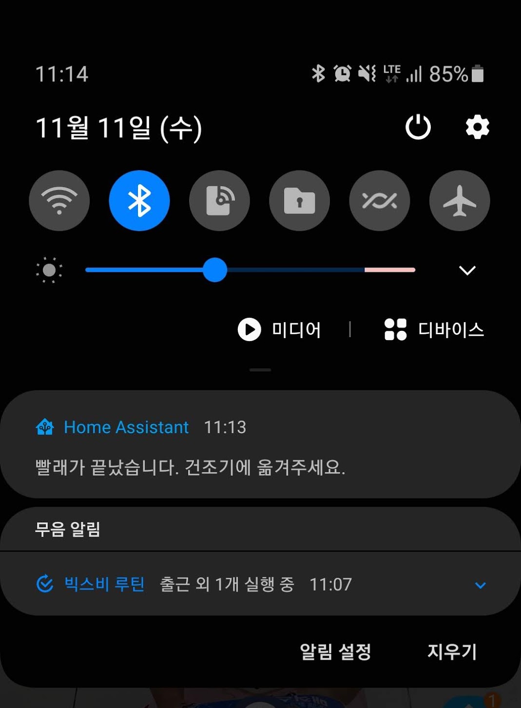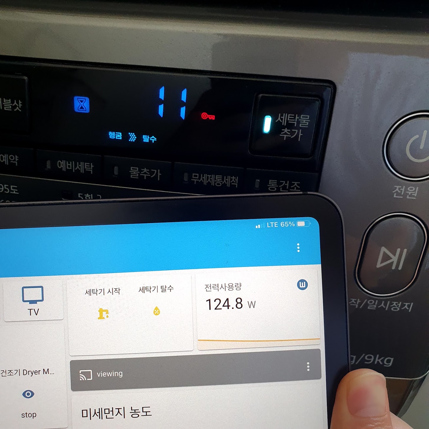 이제 세탁기가 종료되면 핸드폰으로 알림을 받을 수 있습니다. 가끔 세탁기가 끝나고 건조기로 옮기는걸 까먹어서 다음날 쉰내 나는 빨래를 다시 돌리는 참사가 있기도 했는데 이제 그런 일은 피할 수 있을 것 같습니다.