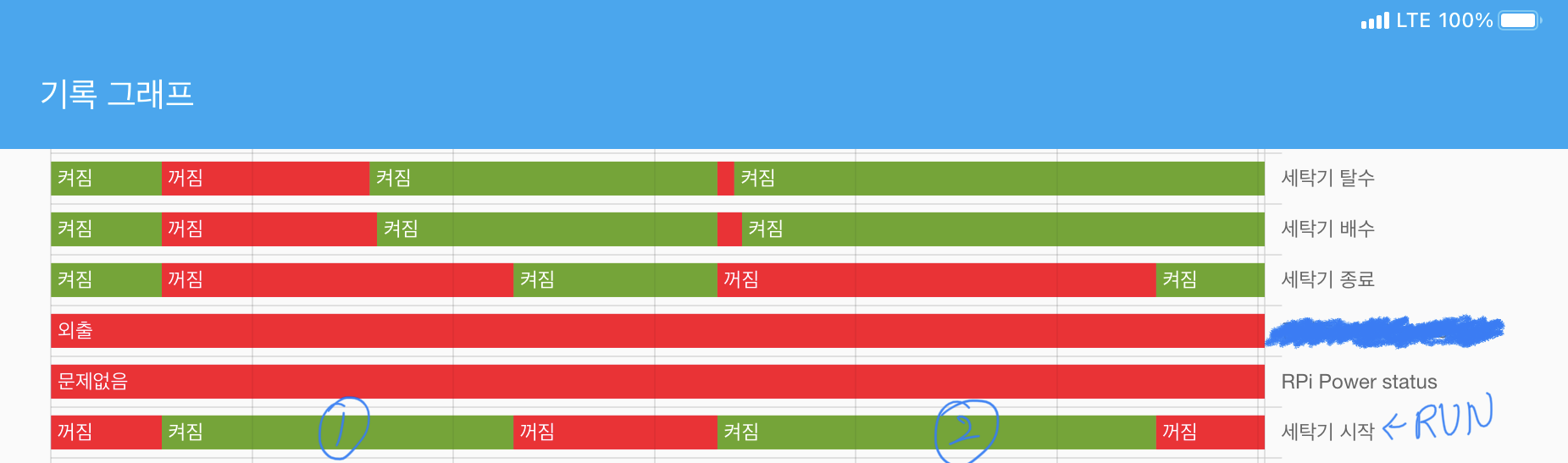 세탁기의 시작과 종료는 정확하게 인식이 되는데, 탈수 및 배수를 인식한 시점이 좀 이상하죠? 로직에 수정이 필요해 보입니다.