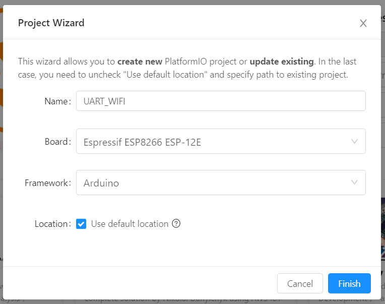 펌웨어 올려보겠습니다. IDE환경은 Visual Studio의 PlatformIO입니다. ESP-12E 보드용으로 새 프로젝트를 열어줍니다.