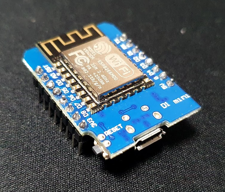 사용한 보드는 ESP8266기반에 ESP12E 모듈입니다. 정확하게는 wemos D1 mini로 USB 포트가 달려있어서 편리하게 사용할 수 있는 모델입니다. (ESP8266 모듈 아무거나 다 유사하게 사용할 수 있습니다.)