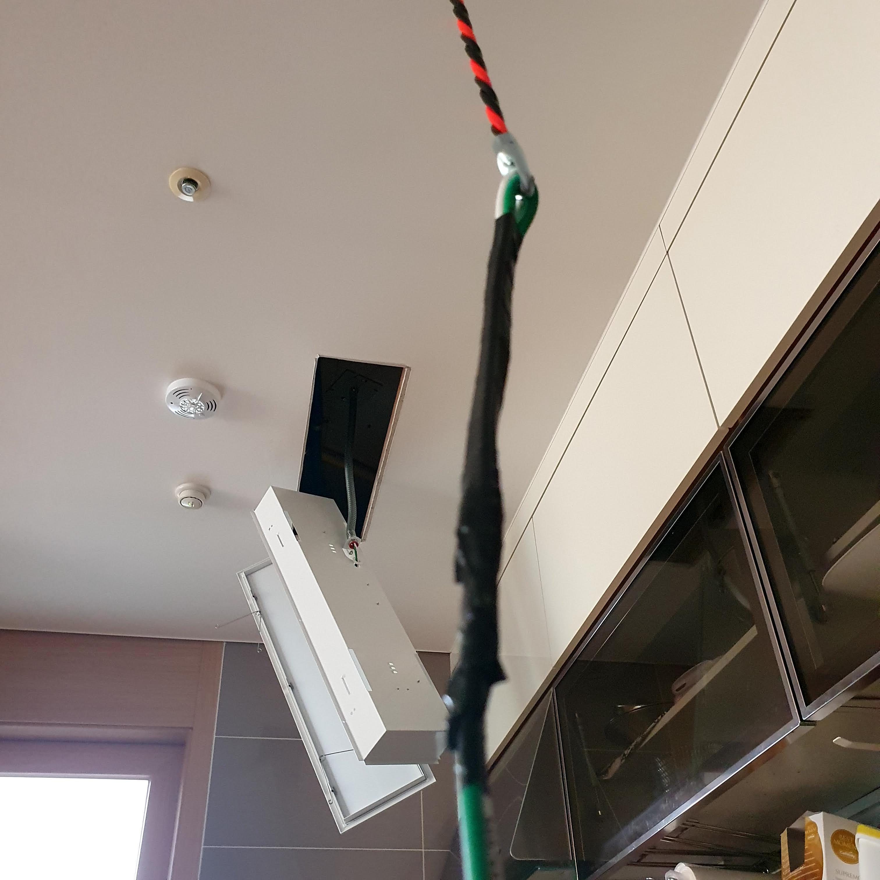 전등 뭉치를 제거하고 나면 천장에 위 사진처럼 전선들이 교차하면서 통과하는 부분을 볼 수 있는데요. 이제 인출선(요비선)이 활약할 시점입니다.