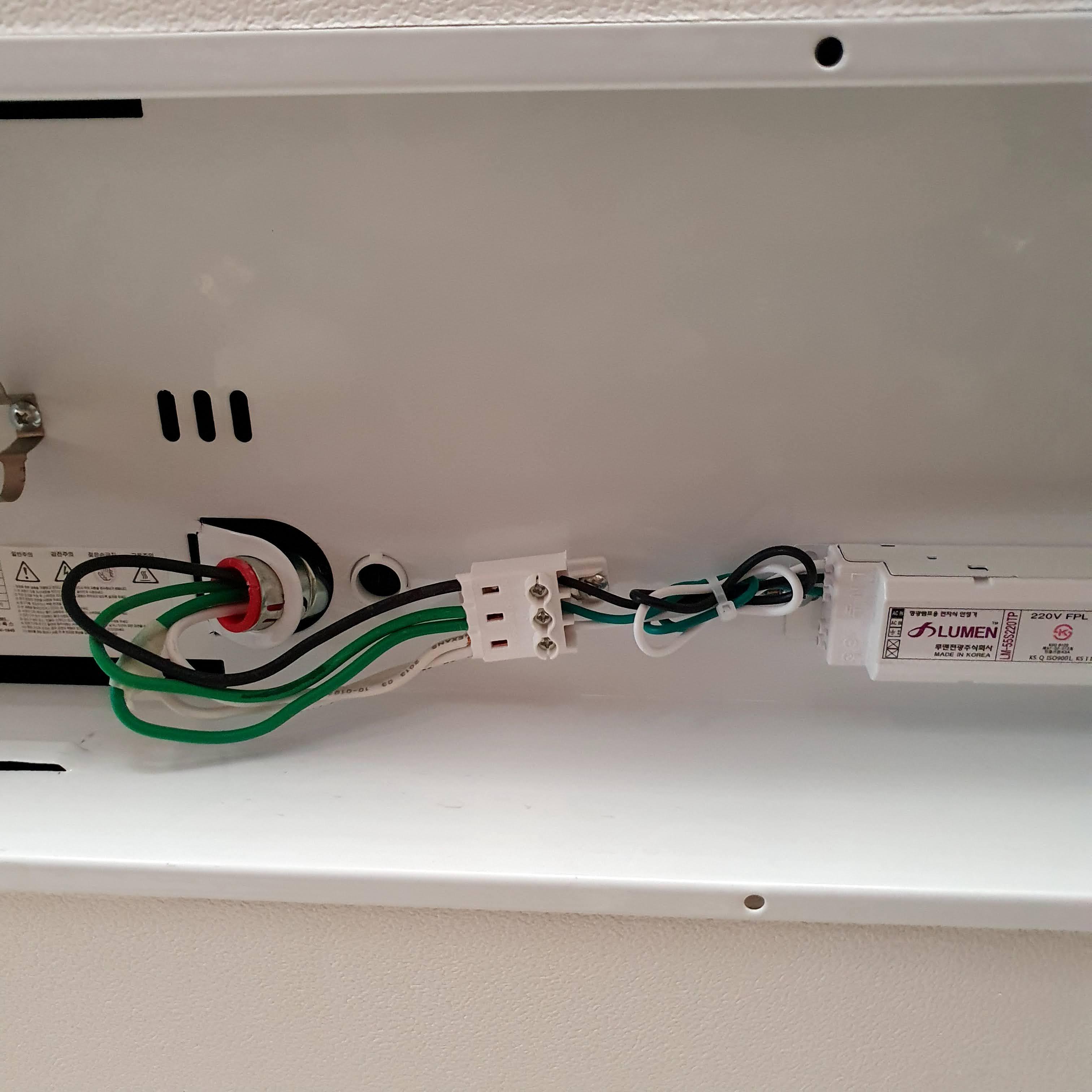 저 같은 경우는 설치된 전등에 사진처럼 접지선, 중성선이 분기될 수 있도록 커넥터 같은 부분이 있어서 기존 접지선과 중성선에 연결을 간단하게 할 수 있었습니다. 조립의 역순으로 해집어 놨던 전등을 다시 설치해주고 스위치 부분도 마무리해 보겠습니다.