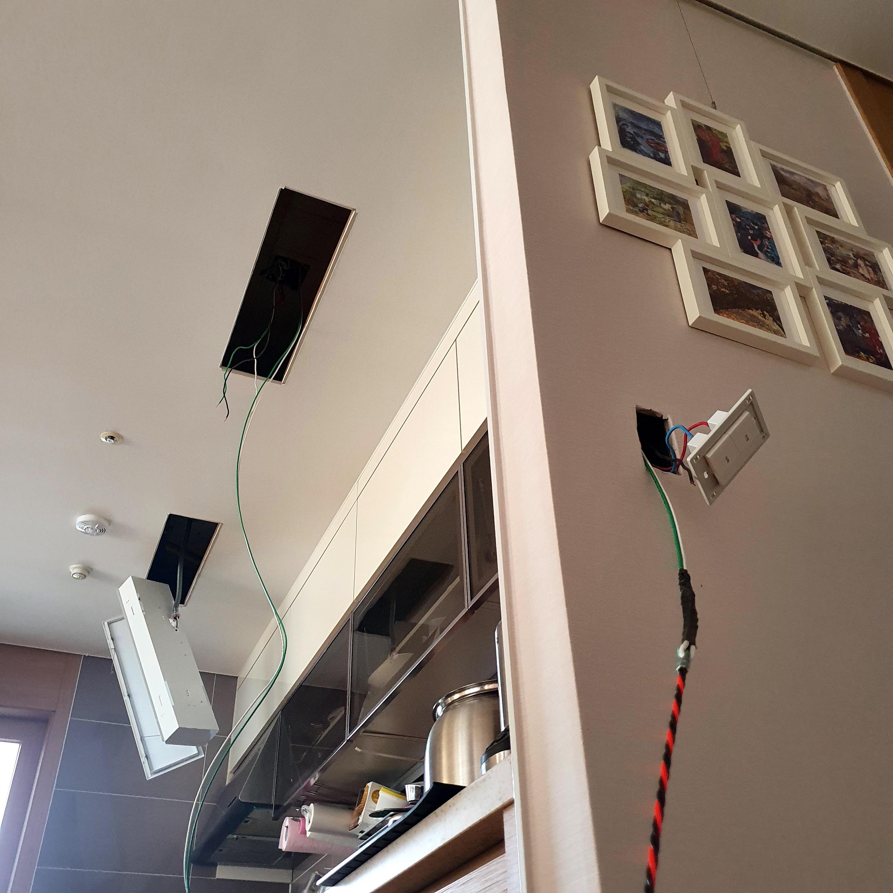벽안으로 선을 집어넣어야 하고 전등에 연결하고 뭔가 무섭고 힘들 거 같은데 결론적으로는 생각보다 할만했습니다. 요즘 아파트들은 전기선 매립 시공이 아주 잘 되어 있어서 비교적 손쉽게 중선선 추가매립이 가능합니다.