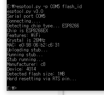esptool.py --p COM5 write_flash -fs 1MB -fm dout 0x0 ks811new.bin
