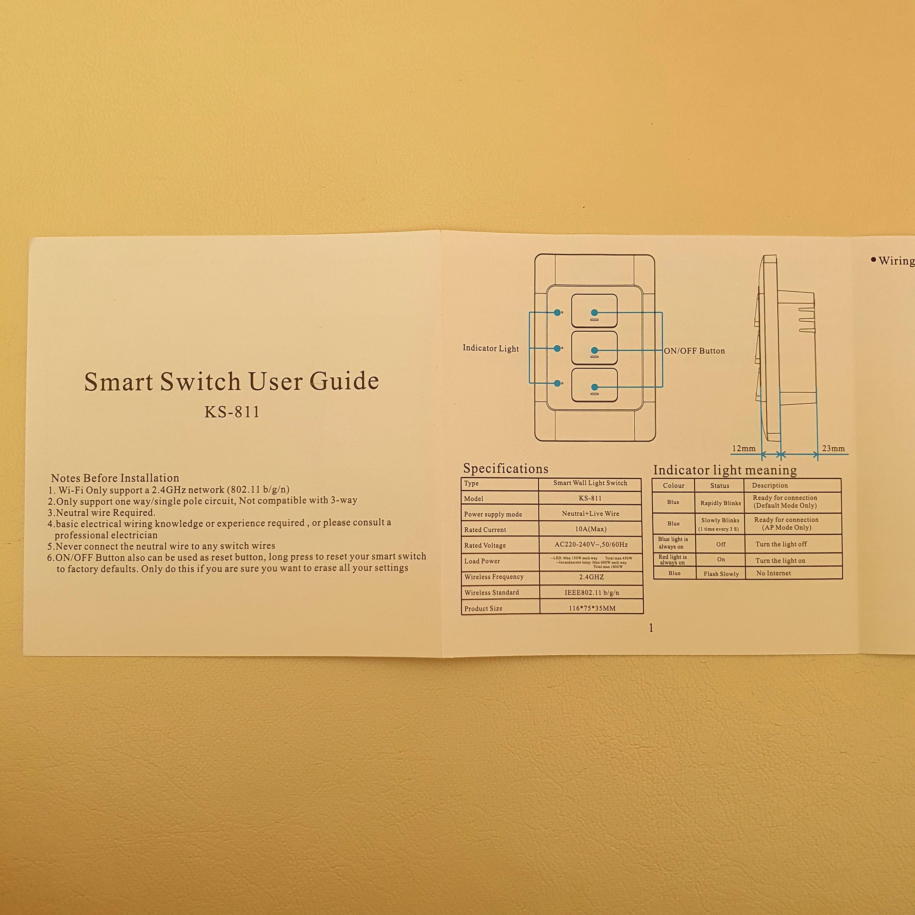 KS-811 모델은 버튼 수에 따라서 1, 2, 3 Gang으로 구분됩니다. 전 2 gang 모델이면 되지만 가격차이가 크지 않아서 3 gang으로 구매했습니다. 왜냐하면 일단 2개는 기존 전등 스위치 2개를 대체하고 그리고 남는 1개는 HA의 자동화나 Red-node를 이용해서 집안에 있는 다른 제품에 붙여서 컨트롤하는 스위치로 사용하면 좋을 것 같아서였습니다.