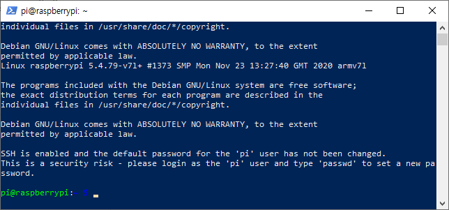 부팅이 완료된 라즈베리파이에 RDP든 SSH든 아무 방법이나 사용해서 접속하고 아래 설정을 진행합니다. 전 SSH 터미널을 사용하겠습니다.