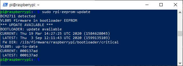 이제 설치된 eeprom의 펌웨어 버전을 확인하고 필요하다면 업데이트해주겠습니다. 다음 명령으로 업데이트가 필요한지 확인합니다.
