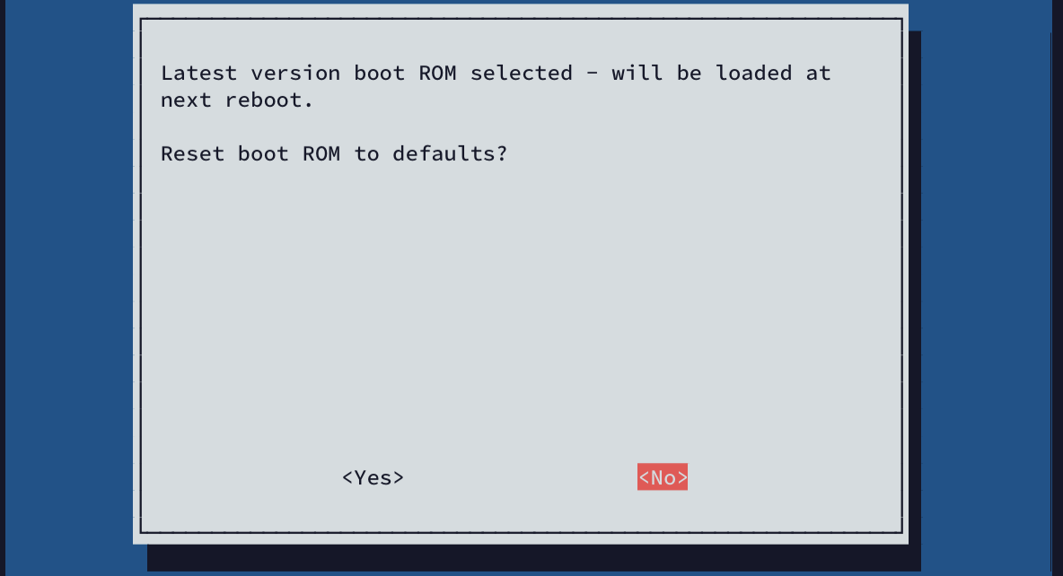 E1 Latest Use the latest version boot ROM software를 선택해서 다음 질문에서 "No"를 선택합니다.