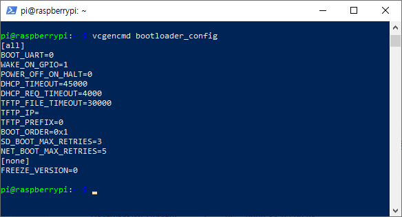 이제 라즈베리파이의 USB 부팅 준비가 끝났으니 부팅 순서를 확인합니다.