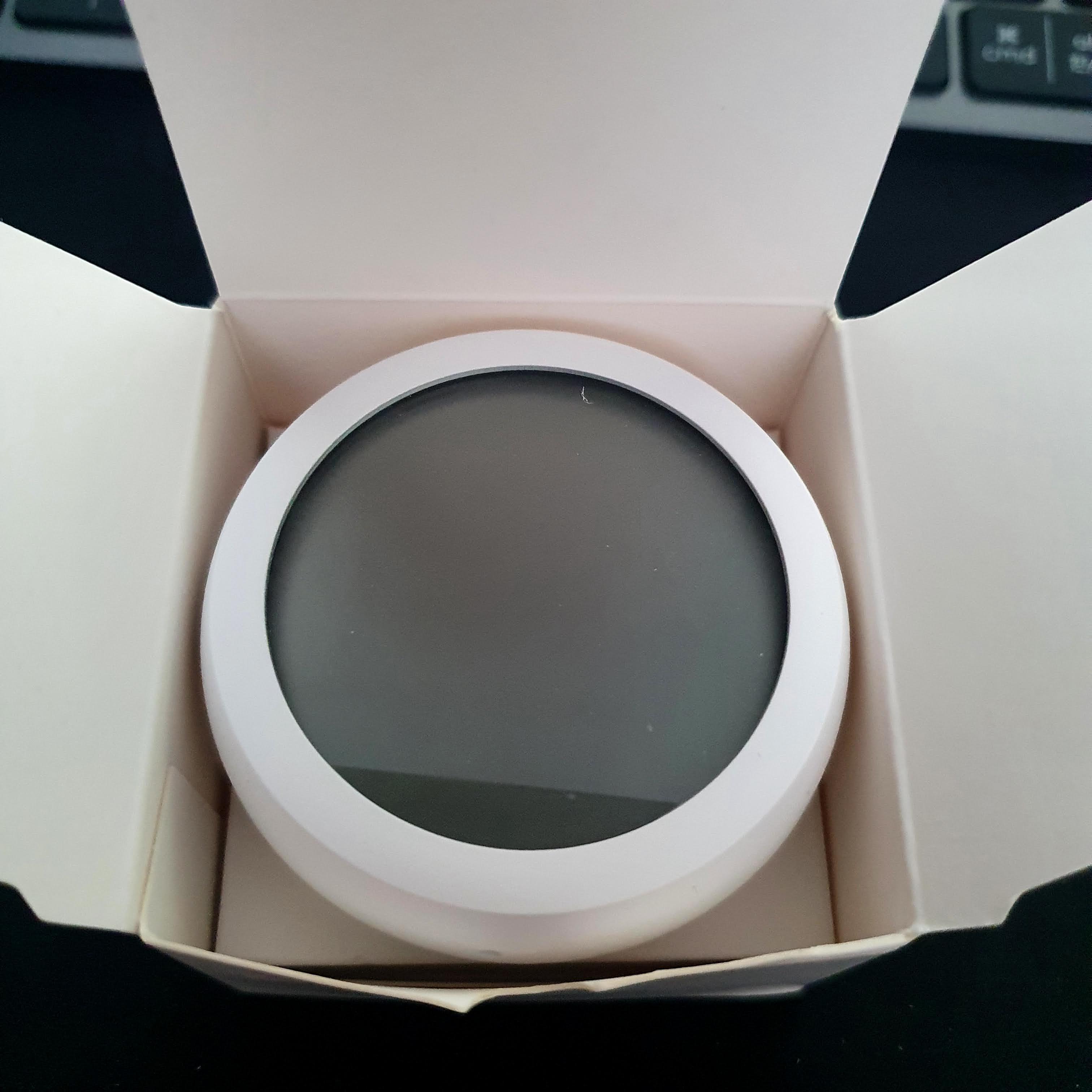 이 제품은 생긴게 아주 귀엽죠. 하얗고 동그란 조약돌 같은데 측정한 온습도를 표시해주는 LCD까지 달려있습니다.