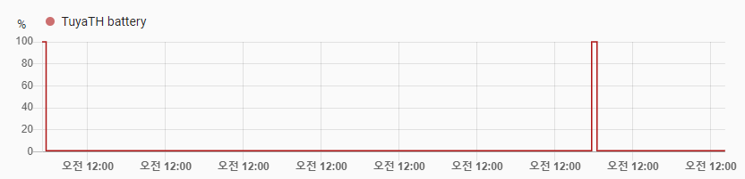 그리고 배터리 잔량 표시도 한동안 늘 100%였는데 어느날 갑자기 0%가 되었어요. 아래 그래프는 2월 한 달간 배터리 잔량이 기록된 그래프입니다. 계속 0%이면서 간헐적으로 100%로 표시되는 걸 볼 수 있습니다.