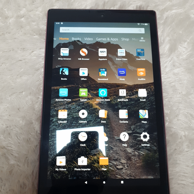 전원을 켜면 생소한 FireOS가 맞이해 줍니다. 저렴한 디바이스를 제공하는 대신에 아마존의 플랫폼 안으로 사용자들을 최대한 끌어들이려는 미끼 역할을 하기 디바이스이기 때문에 FireOS 그 자체로는 여러 가지 제약사항이 있습니다.