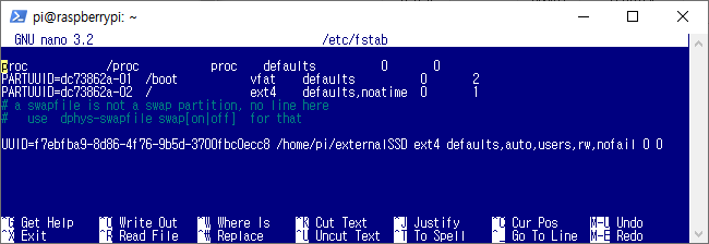 라즈베리파이에서 외장 SSD를 사용하는 경우 SSD 드라이브를 부팅 시 자동으로 마운트 시키는 방법입니다.