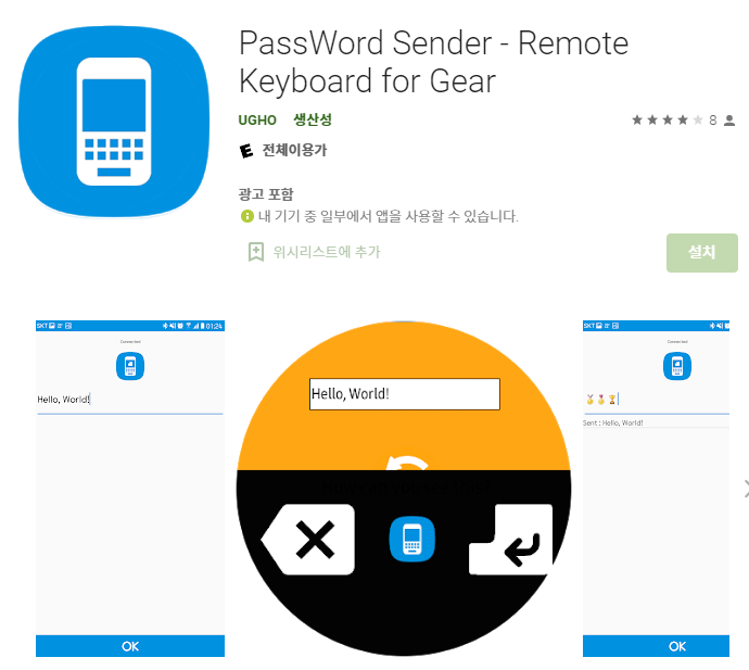 핸드폰에서 편하게 입력하면 그 내용이 워치에 보내져서 편리하게 문자를 입력할 수 있습니다. 앱 이름에서처럼 비밀번호 입력할 때 아주 요긴하게 사용할 수 있습니다.