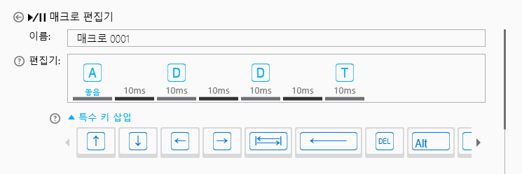 매크로 편집기는 꽤나 디테일한 매크로를 편리하게 만들 수 있게 되어 있습니다. 그리고 매핑을 변경할 수 있는 키는 다음과 같이 총 9개 지원하고 있습니다.