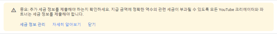 얼마 전부터 구글 애드센스를 들어가면 세금정보를 제출하라는 경고가 화면 상단에 보이기 시작했습니다.