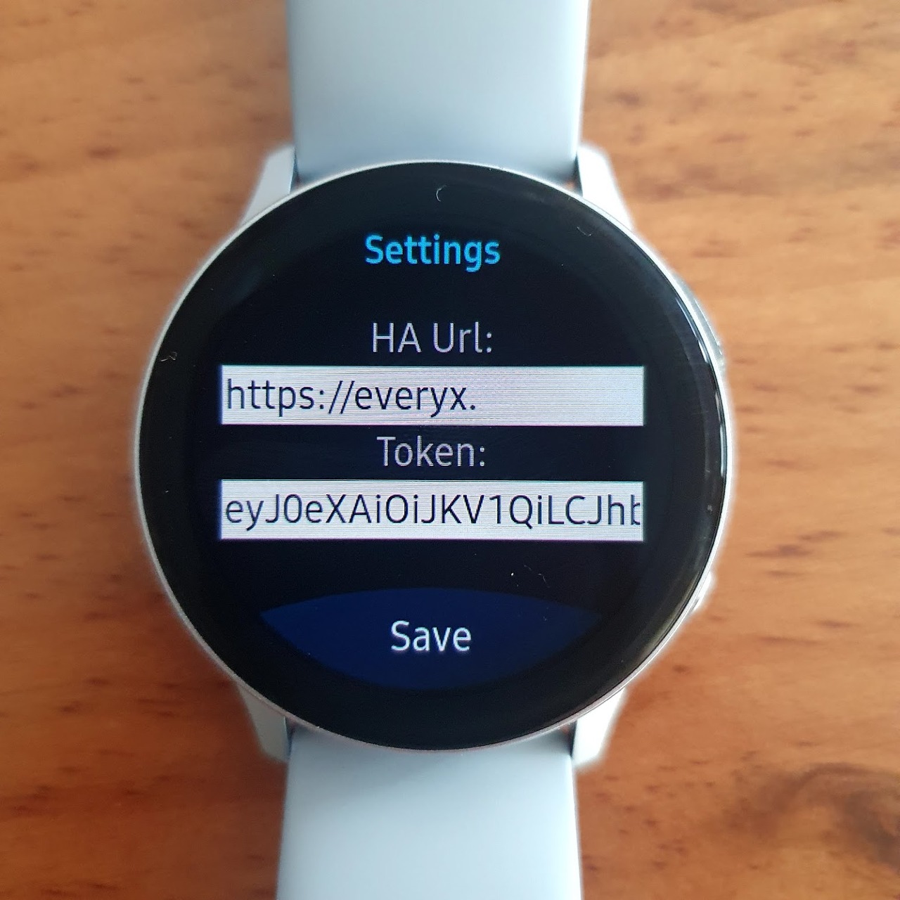 HA 서버의 주소와 앞서 만든 인증 토큰을 입력해 줍니다. 그런데 주소 정도는 워치에서 직접 입력이 가능하겠지만 토큰 입력하는 건 거의 불가능이죠?! 요럴 때는 PassWord라는 앱을 이용해서 스마트폰을 이용해서 발급받은 토큰을 복사해서 여기에 붙여 넣기 합니다. PassWord에 대한 내용은 아래 링크 참고해 주세요.