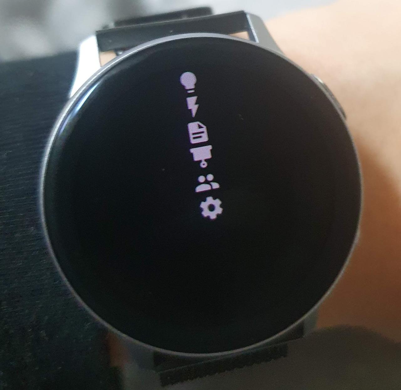처음 깔면 적잖이 당황을 할 수밖에 없습니다. 앱을 실행하면 처음 뜨는 화면이 뭘 의미하는지도 모르겠고 아무리 눌러봐도 아무 반응도 없었거든요. 그런데 조금만 기다리면 오른쪽 화면처럼 메뉴를 선택할 수 있게 바뀝니다. 아마 워치의 속도가 느려서 초기 로딩에 시간이 필요한 것 같았습니다.