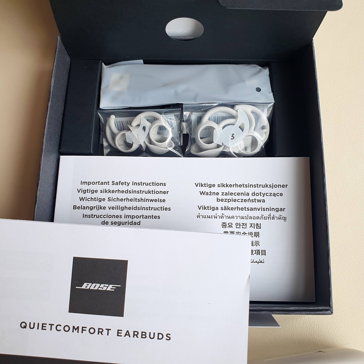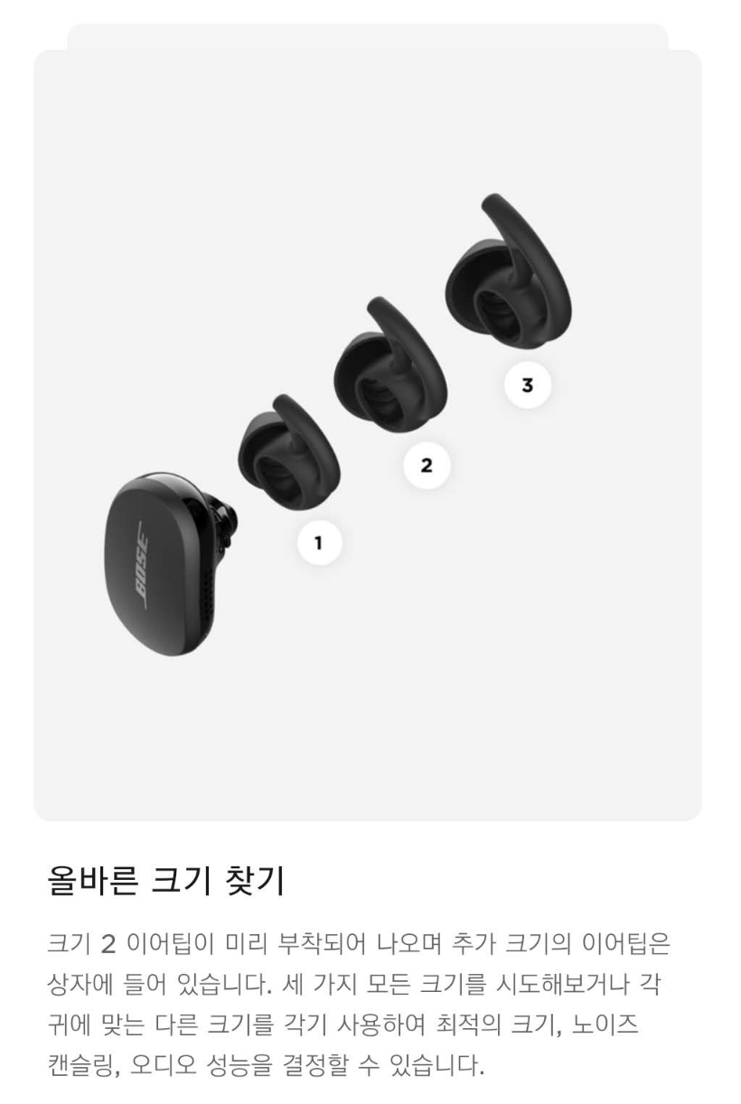색상은 블랙과 소프트톤(아이보리) 2가지로 출시되었습니다. Bose는 검은색이 시그니처라고 생각하지만 이어폰은 흰색이 더 이쁜 것 같아서 이번에는 소프트톤으로 선택했습니다.