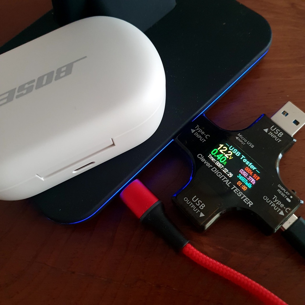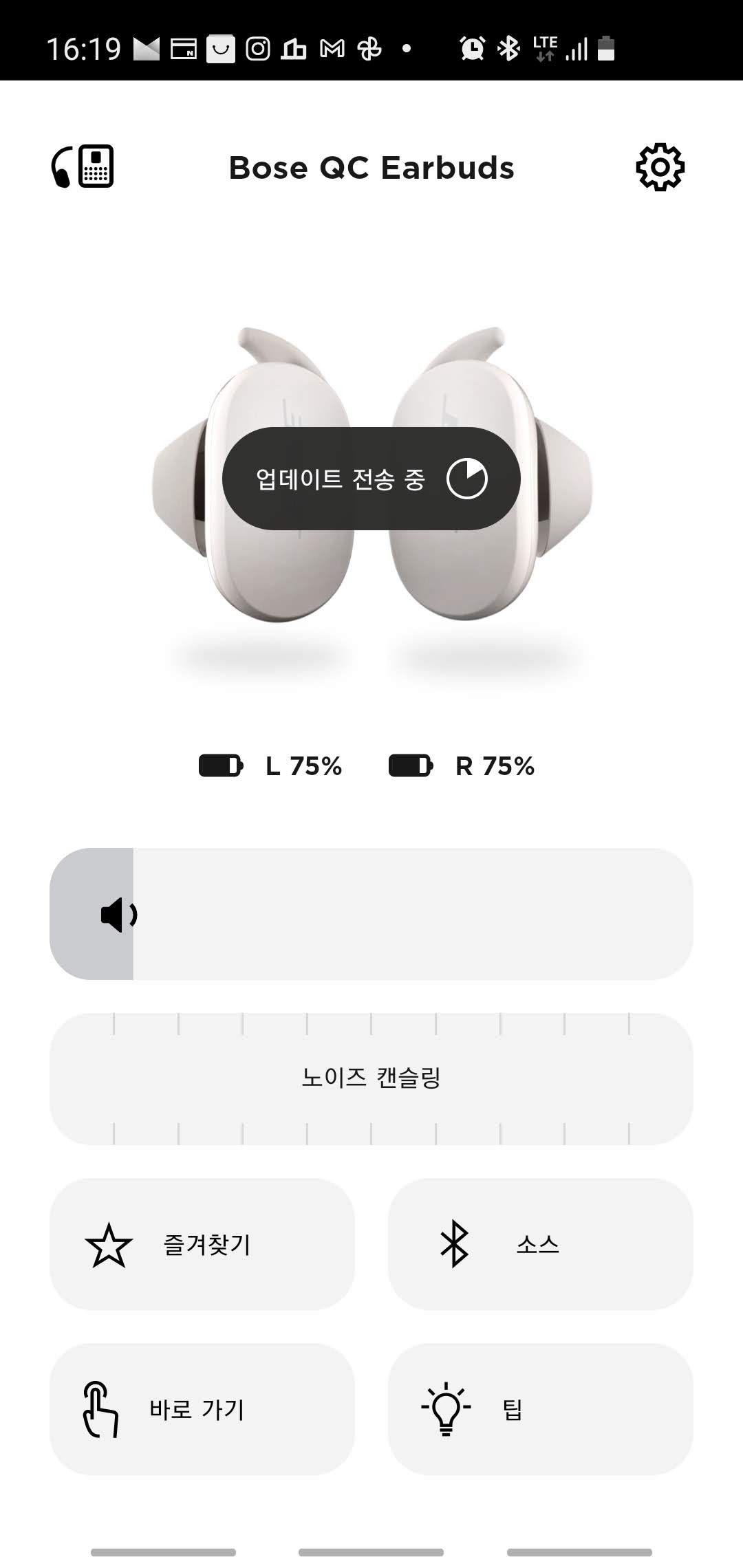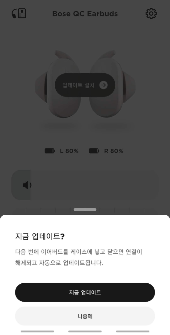 Bose Music 앱에서는 이어버즈 각각의 배터리 상태를 확인할 수도 있고 노이즈 캔슬링 정도를 조정하거나 각종 설정을 변경할 수 있습니다. 그리고 이어버즈의 펌웨어 업데이트도 OTA 방식으로 지원해서 편리하게 사용할 수 있습니다. 펌웨어 업데이트 중에는 케이스의 배터리 잔량 LED가 차례로 반짝이면서 작업중이라는걸 알려줍니다.