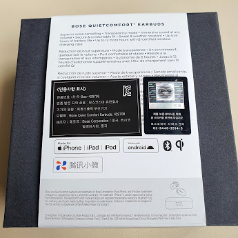 제품 상자는 밀봉 비닐없이 종이 커버(?)로 봉인이 되어 있습니다. 겉면에는 정식 유통사를 통한 수입 제품임을 알 수 있는 인증 스티커가 있습니다. 보통 Bose제품은 미국 현지에서 구매를 하게 되면 한국보다 훨씬 싼 값에 살 수 있는데요. 국내 유통 가격은 유통사를 통한 A/S 채널을 이용할 수 있는 가격이 추가되어 있다고 생각하면 됩니다. 따라서 구매 영수증이나 정발 스티커를 잘 보관해놔야 나중에 A/S를 받을 수 있습니다.