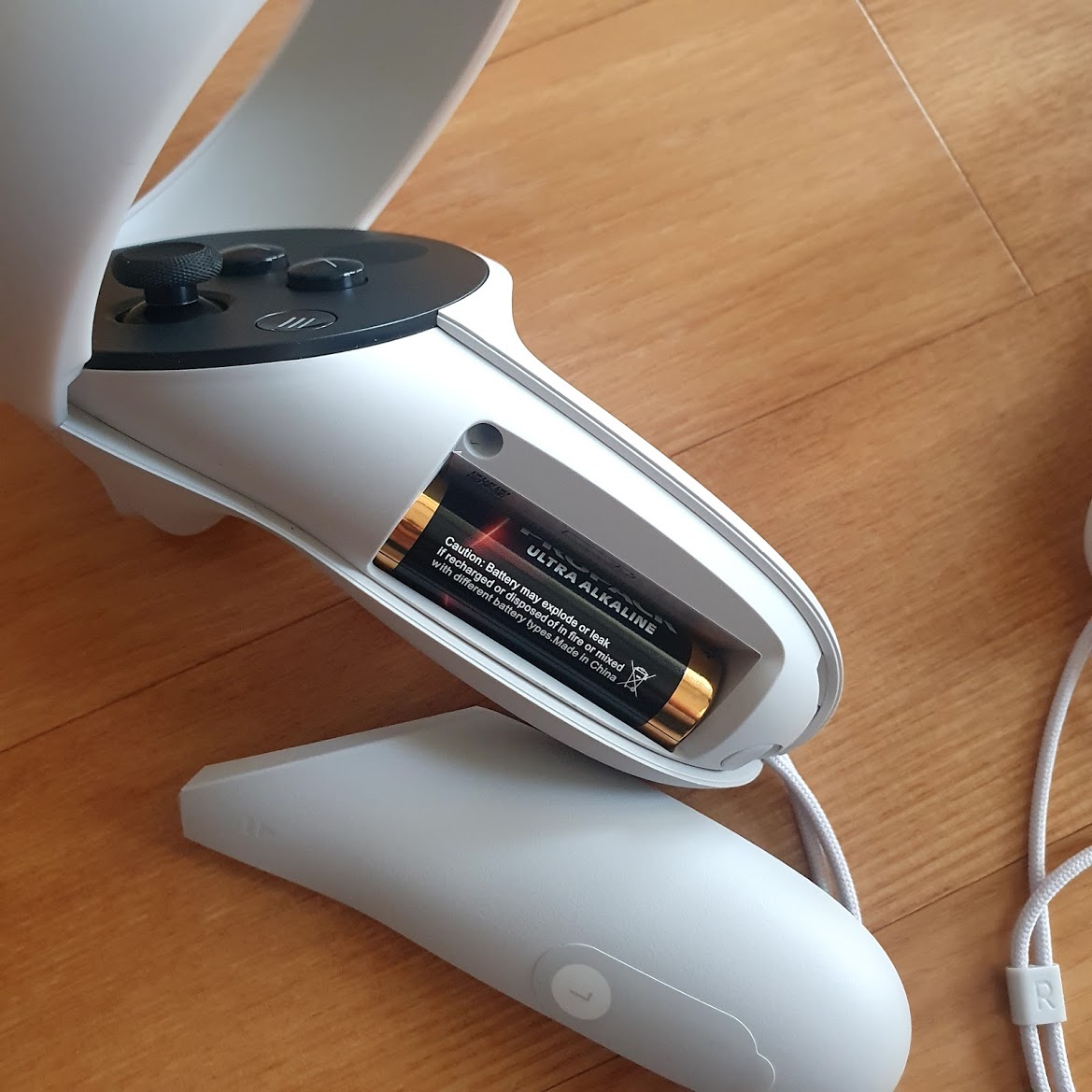 컨트롤러는 충전방식이 아니라 배터리 교환식으로 되어있습니다. 배터리 방전을 막기 위한 절연 팁이 들어가 있어서 사용 전에 잡아당겨서 제거해줍니다.