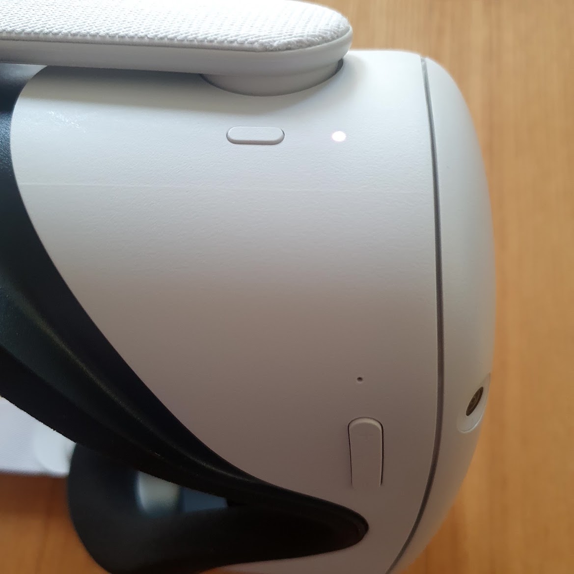마지막으로 기기 등 쪽으로는 눈알 같은 점들이 있는데 HMD의 위치를 보정하고 손동작을 인식할 때 사용하는 카메라가 내장되어 있습니다. 이 내장 카메라 덕분에 별도의 룸 트레커가 없어도 위치를 인식하도록 해 줍니다.