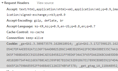 그런데 문제는 이 쿠키 정보를 받아서 넘기는걸 몇 번 시도해 봤는데 쉽사리 성공하지 못했고 다른 편법으로 성공할 수 있었습니다.