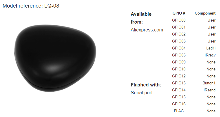 일단 LQ-Y08의 핀 맵 정보가 있어야 하는데 다행히 Tasmota 홈페이지에 이런 정보가 있었습니다.