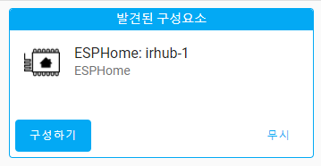 잠시 기다렸다가 HA의 구성요소를 보시면 새로운 ESPHome 노드가 인식된 것을 볼 수 있습니다.