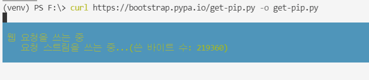 이게 2만 줄이 넘는 크기가 큰 파일이라서 시간이 쪼끔 걸립니다. 다운로드가 끝났으면 스크립트를 실행시켜주면 pip가 설치됩니다.