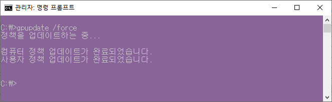 정책 업데이트가 완료되었다는 메시지가 나타나면 이제 저장된 자격 증명으로 RDP 접속이 가능해집니다.
