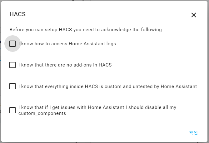 HACS(Home Assistant Community Store)는 HA에서 각종 커스터마이징을 GUI에서 설치하고 관리하도록 도와주는 패키지입니다. 많은 서비스들이 HACS를 지원하기 때문에 깔아 두면 한 번은 요긴하게 사용할 수 있는 패키지인 것 같아요.