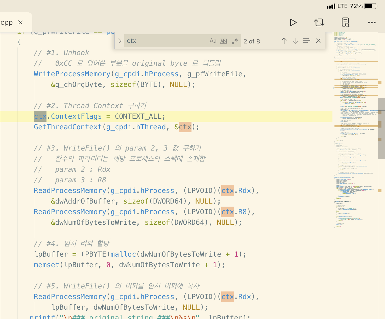 복사가 끝났고 코드를 열어보니 더더욱 VSCode와 유사한 느낌이네요. 우측에 코드 썸네일로 표시되고 언어별로 구문 강조도 잘 되고 있습니다.