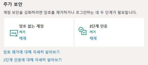 구글에서 분석해주기를 제 비밀번호 중 몇 개는 이미 해킹되었고, 300여 개가 넘는 계정에서 사용하는 비밀번호는 취약하다고 하는데, 과연 완벽하게 비밀번호를 관리하는 게 어떤 건지 감도 못 잡겠습니다. 그래서 암호가 아얘 필요 없어진다는 얘기는 너무 솔깃했고 기능이 풀리자마자 MS 계정의 암호를 바로 없애버렸습니다.