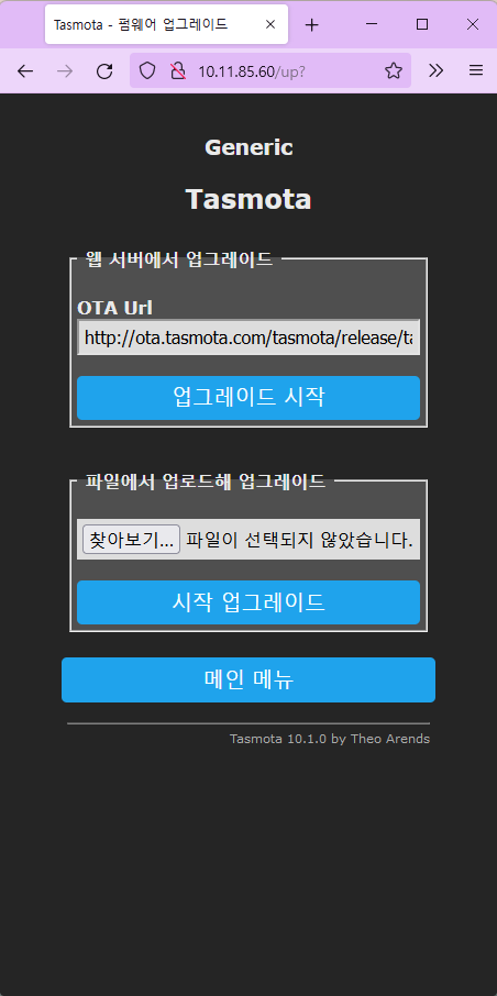 좌측은 gz 압축파일이 있고 오른쪽은 일반 파일입니다. 만약 Tasmota가 이미 설치가 되어 있는 경우라면 펌웨어 파일을 다운로드하지 않고 온라인으로 직접 OTA 업그레이드를 할 수 있는 URL도 있습니다.