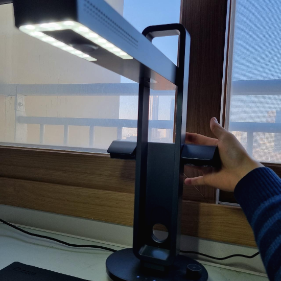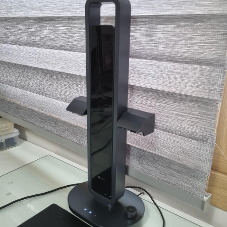 본체는 무개 감이 있어서 타워형의 길쭉한 구조이지만 안정감이 있습니다. 그리고 조작 스위치는 클릭이 되는 조그 다이얼이 전부입니다. 길게 누르면 전원이고 짧게 누르면 스캐너 모드와 스탠드 모드가 전환됩니다. 조그 다이얼을 돌리면 조명의 밝기를 조절할 수 있습니다.