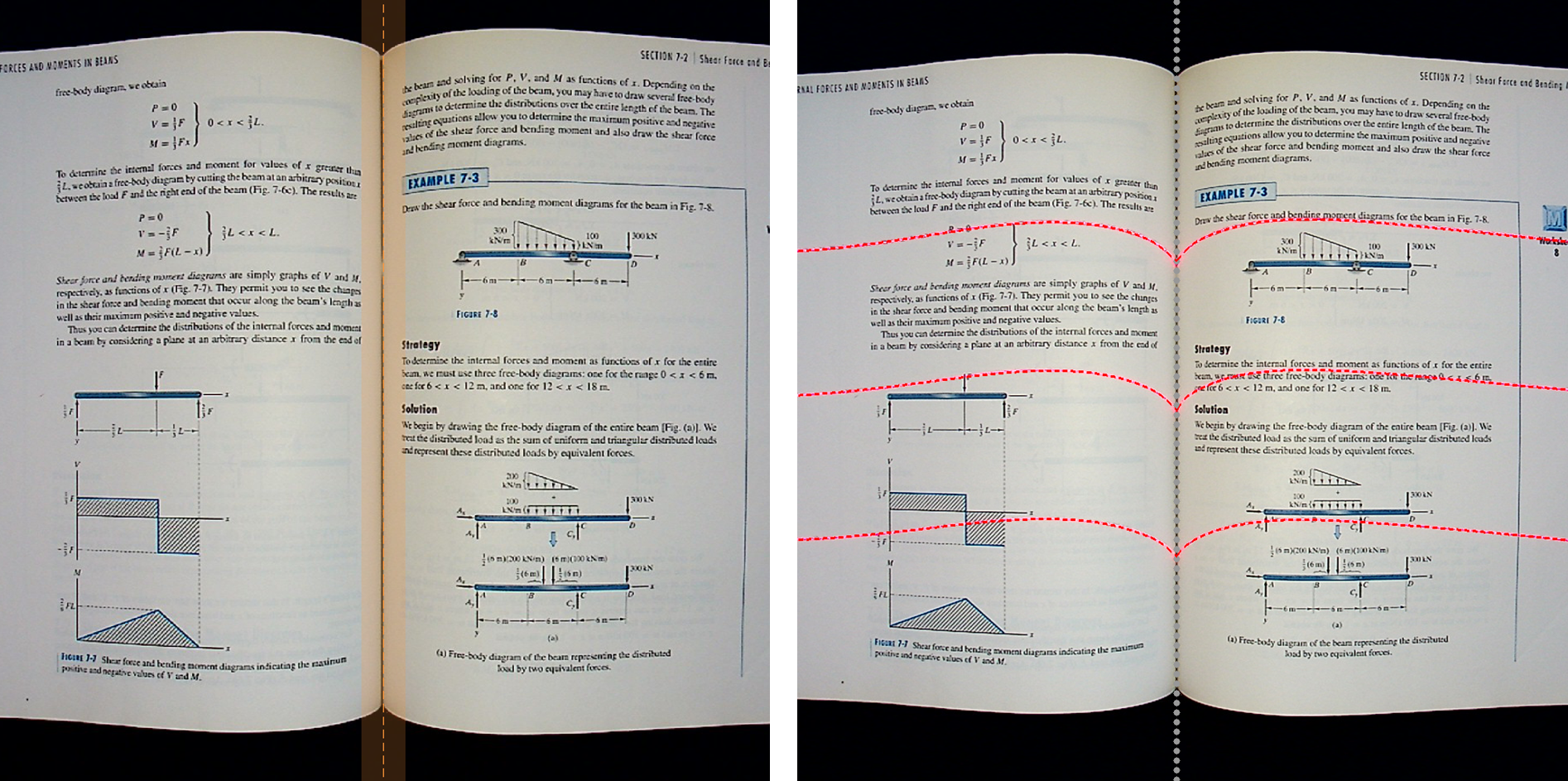 이렇게 보정을 하면 몇백 페이지 이상이 되는 두꺼운 책이라도 곡면을 신경 쓰지 않고 스캔할 수 있어서 상당히 유용한 기능입니다. 그 보정이 완벽하지는 않지만 아래와 결과물에서 보시다시피 상당히 쓸만한 수준은 되고 저도 만족하고 있습니다.