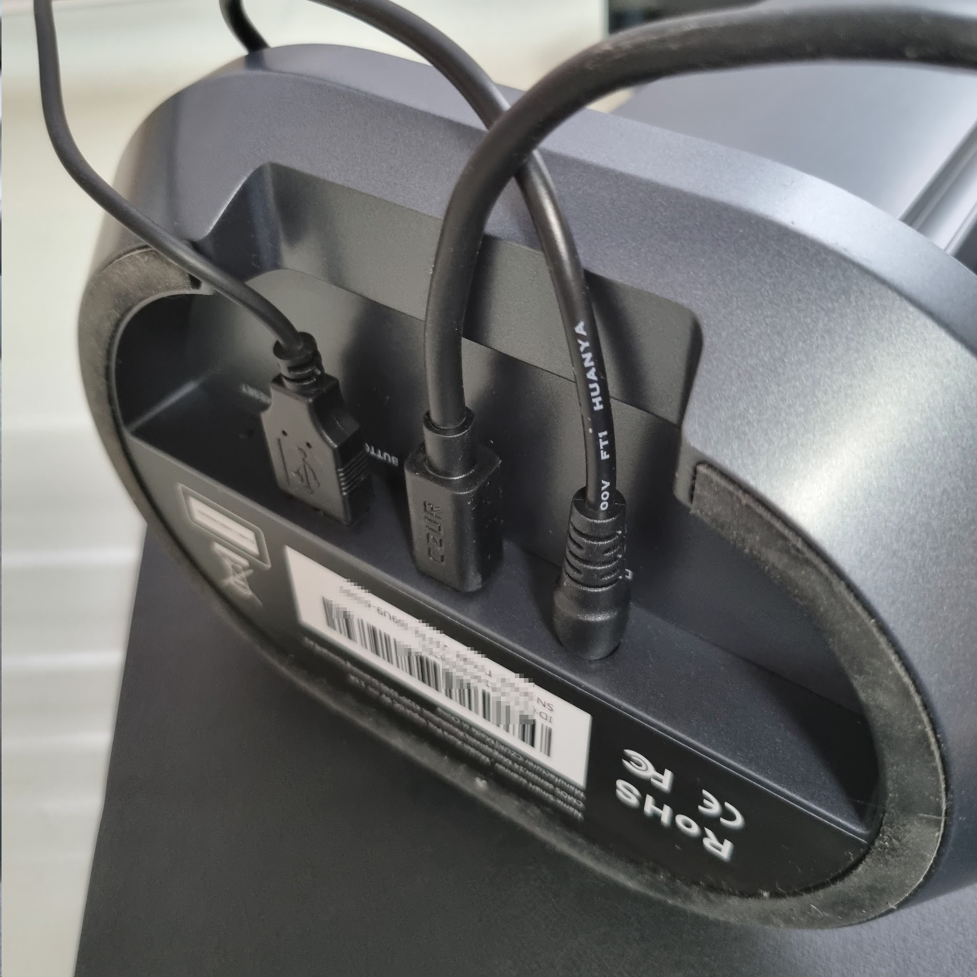 본체 뒷면에는 케이블 연결부가 있습니다. 좌측부터 페달 스위치, USB 케이블, 전원 케이블입니다. 케이블은 제품 뒤쪽으로 깔끔하게 정리할 수 있도록 케이블이 지나가는 홈이 있습니다. 이런 부분들을 보면 얼마나 고민에 고민을 통해서 만들어진 제품인지 알 수 있습니다.