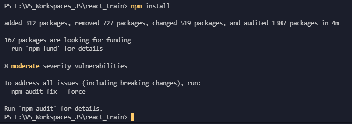 혹시 이화면이 뜨지 않고 에러가 보인다면 터미널 창에서 "npm install"명령어를 먼저 하고 "npm start"를 해보세요. npm이라는 건 패키지 매니저입니다. 파이썬에 pip, 리눅스의 apt 같은 건가 봐요. 리액트가 프레임웍을 이용하는 거라 기본적인 패키지가 설치가 되어 있어야 하는데 npm install 명령어로 프로젝트에 필요한 패키지 의존성을 확인하고 설치를 해 줄 수 있습니다.