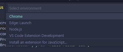 그러면 선택창에 어떤 디버깅 환경을 사용할지 물어보는데요. 크롬 많이들 사용하시잖아요?! 여기서 "Chrome" 선택합니다.