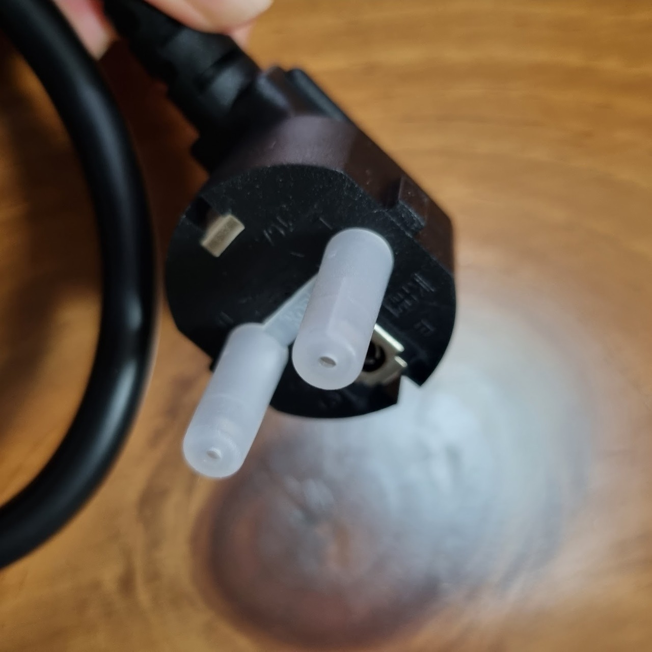 전원 코드 길이는 1.5m로 책상 아래에 있는 콘센트를 위로 연장해서 쓰기에 충분합니다. 그리고 100W USB 충전용 전기를 통과시키는 것 외에도 220V 전원의 연장선 역할을 해야 하기 때문에 어느 정도 굵기 이상의 도선이 사용되어야 하는데요. 한눈에 봐도 굵다 싶을 정도로 보통 6구나 8구 멀티탭에 사용되는 코드와 유사한 굵기로 만들어져 있습니다. 스펙상 16A까지 사용 가능하다고 하니 밥솥, 드라이기 등 전열기 사용에도 문제없어 보입니다.