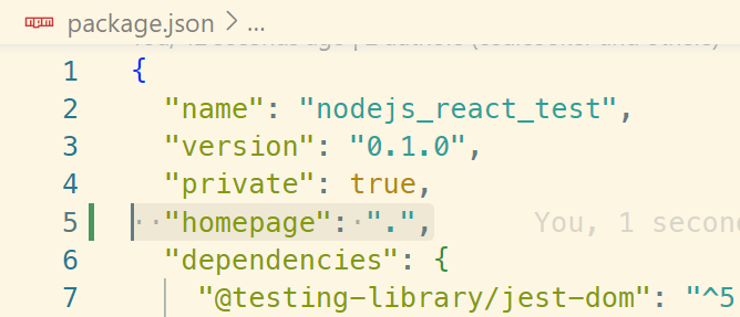 속성 값은 웹이 개시되는 위치를 적으면 됩니다. 예를 들어 웹이 개시될 서버의 도메인이 https://tistory.com이라면 "homepage": "https://tistory.com", 이라고 한다는 거죠. 그렇지 않고 그냥 점(.)으로 상대 경로를 사용하도록 할 수도 있습니다. 전 상대 경로를 지정했습니다.