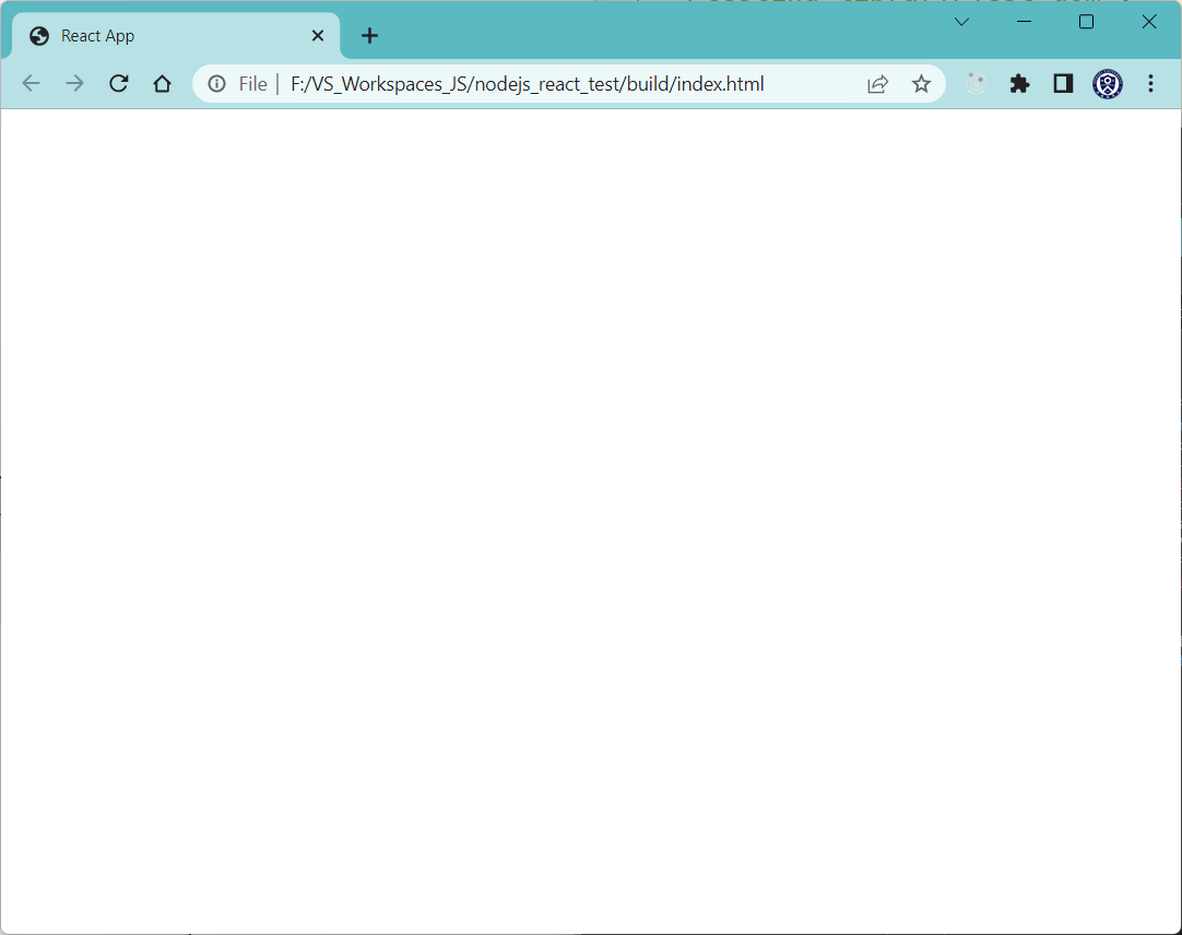 위에 보시는 것처럼 빌드 폴더 안에 보면 여러 가지 파일들이 생성되어 있는데 이 중에서 웹을 시작하게 하는 파일은 index.html입니다. 상식적으로 리액트로 만든 웹앱을 실행하려면 저 index.html 파일을 브라우저에서 열면 된다라고 알고 있습니다만 실제로 열어보면 브라우저에서는 아무것도 표시되지 않습니다.
