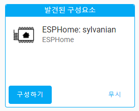 펌웨어 올리고 전원 연결하면 Home Assistant에서 컴포넌트 바로 인식되고 다음과 같이 컨트롤러를 대시보드에도 추가해 줬습니다.