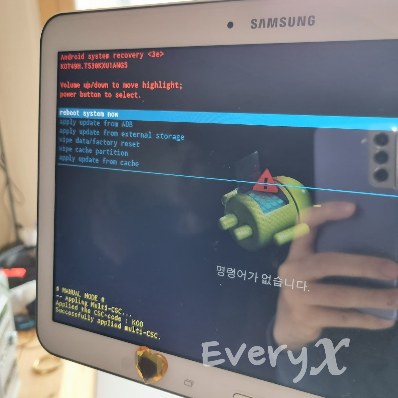 이 작업은 파일이 작아서 금방 끝나는데 역시 작업이 완료되면 리부팅됩니다. 이상업이 리부팅이 되면 기기 전원을 다시 끕니다.