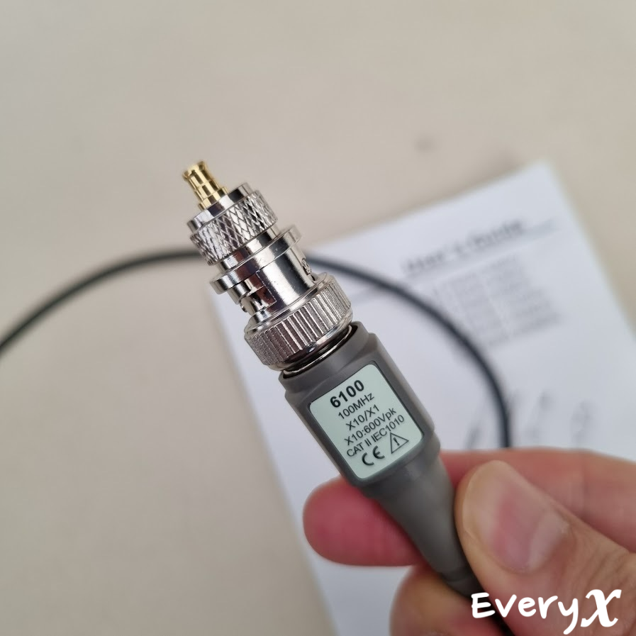 오실로스코프용 프로브는 상용제품을 사용합니다. 파손돼도 쉽게 교체할 수 있겠네요. P6100 100 MHz 짜리 프로브입니다.